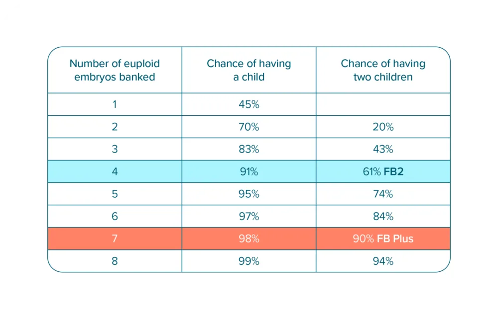 The graphic below shows how many euploid embryos you may need to reach your ideal family size: