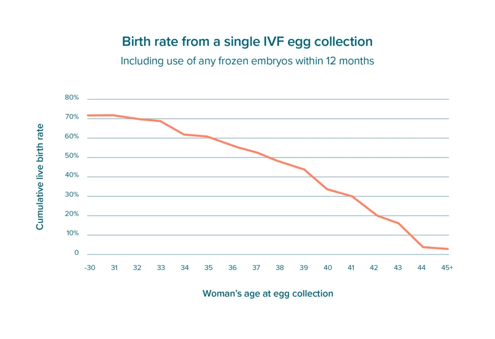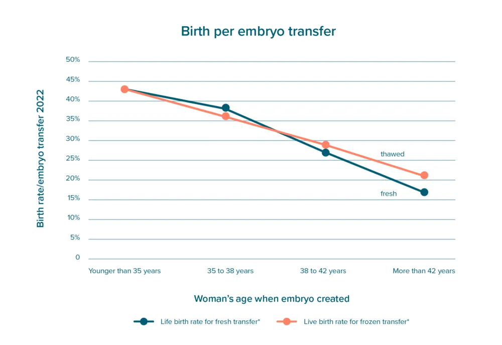 For IVF, this includes using both fresh and frozen embryos from a single egg collection. Over half our births from IVF in younger women come from using frozen embryos.